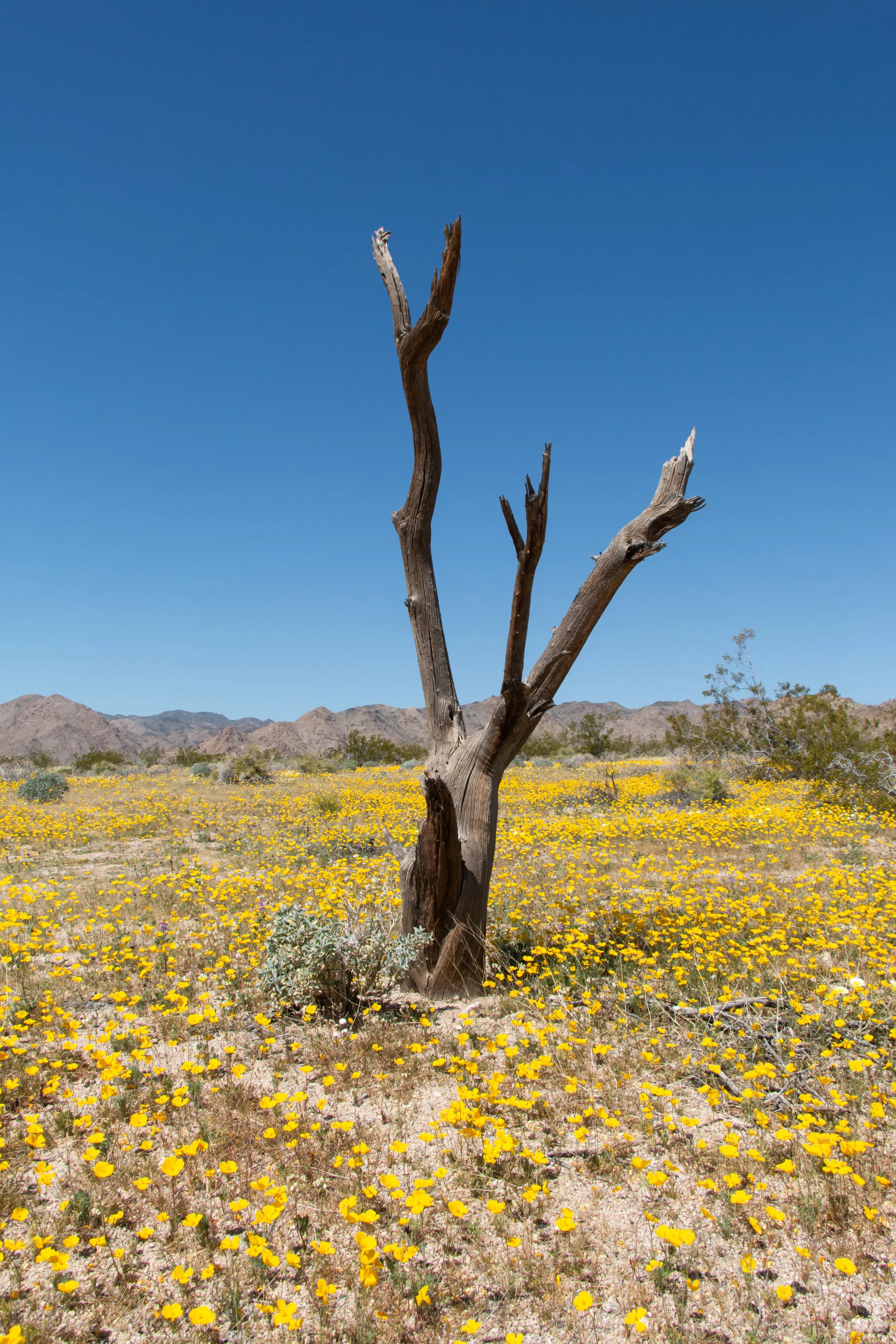 February to March: Blooms start in lower elevations like Pinto Basin and the southern park boundaries.